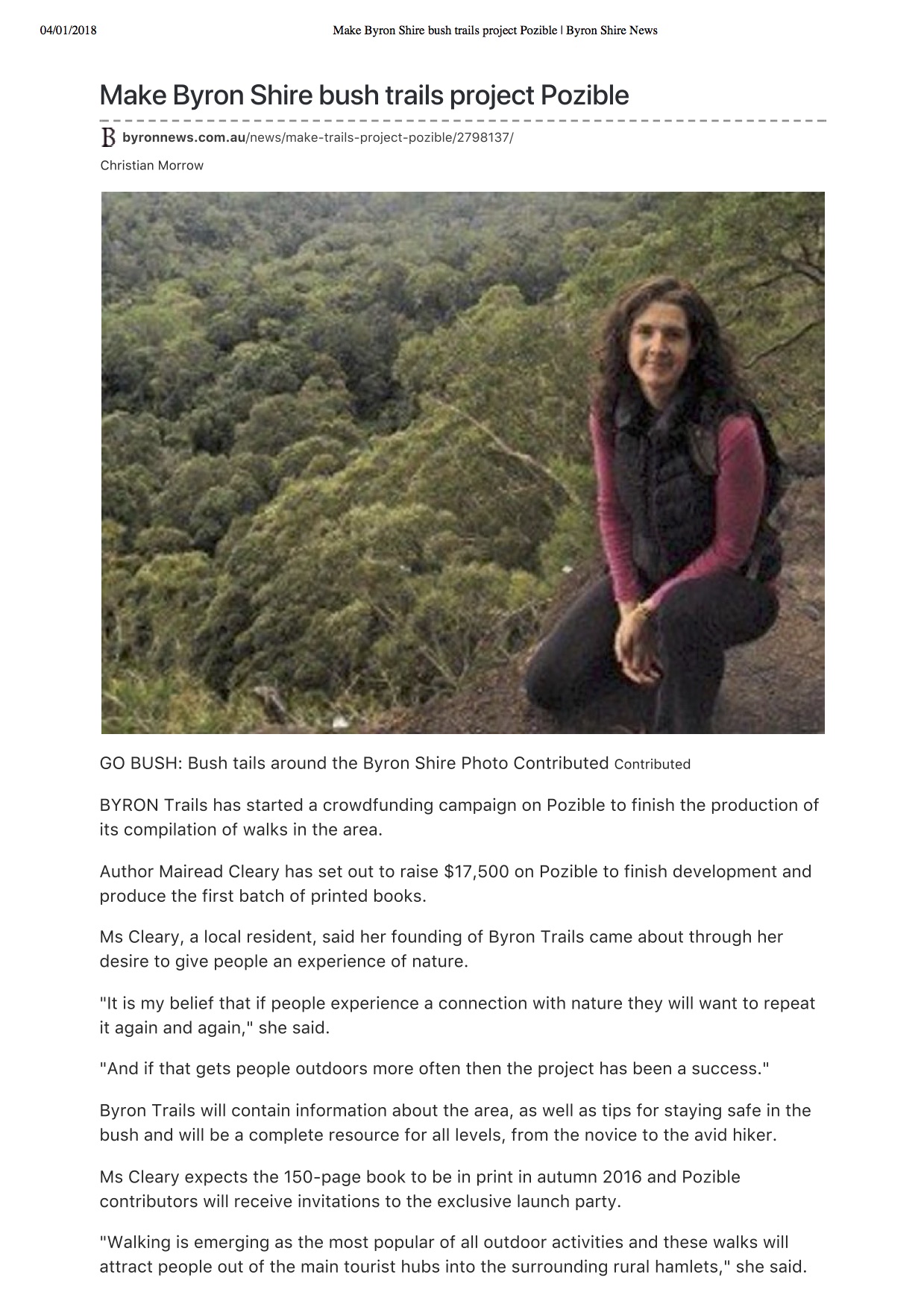 In the press At Byron Bay Writers FestivalGreat books at the #byronwf2016 self-published marquee #The50Book and #ByronTrails @love_captainhoneyA photo posted by Belinda Nowell (@boabel) on Aug 5, 2016 at 6:40pm PDT Crowdfunding video